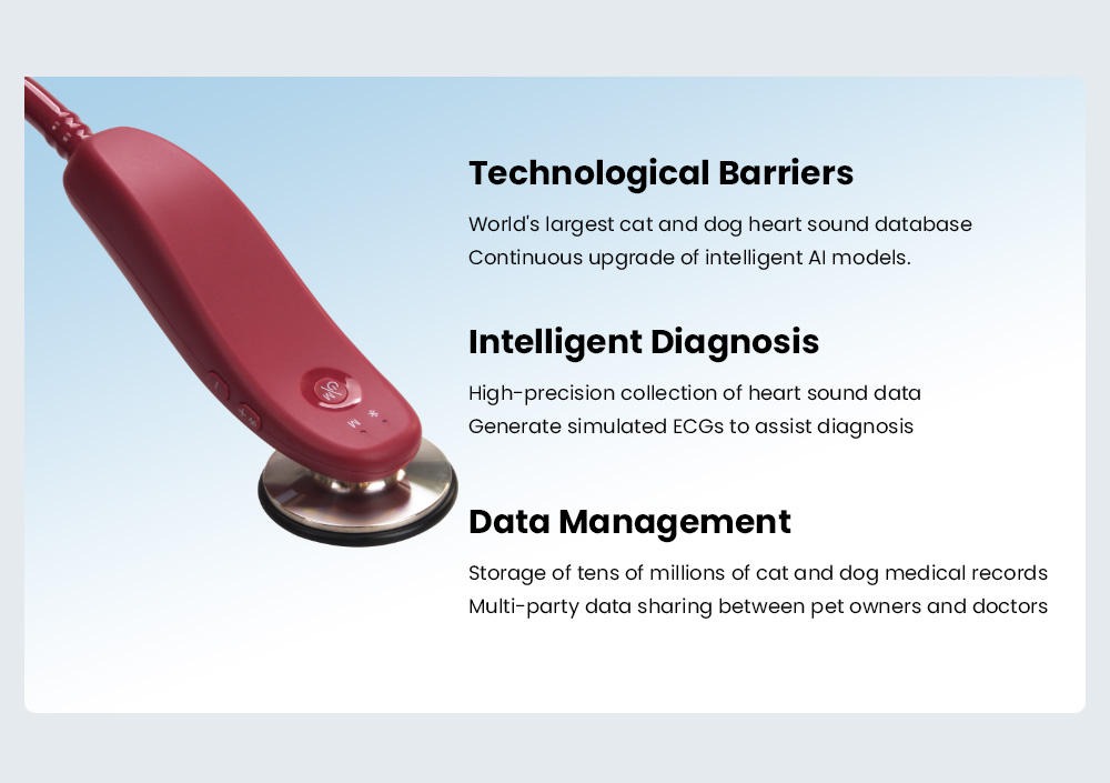 Portable Cardiology Vet Stethoscope AI Smart Electronic Digital Dog Clinic Precise Interpretation